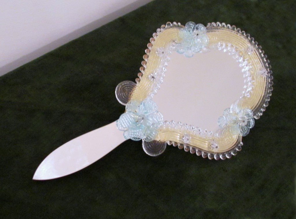 Table Venetian mirror, handcrafted, made in original Murano glass.